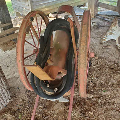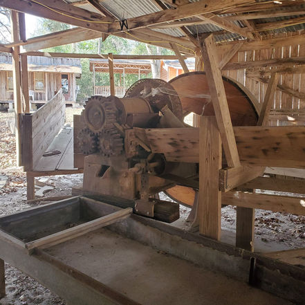 The syrup mill was originally part of the Ivey syrup mill from Grapeland, Texas. It operates with a 1- cylinder gasoline Fairbanks engine which dates back to 1917. The cane crusher dates back to 1897.