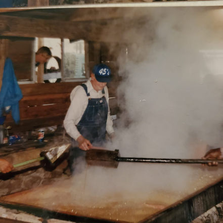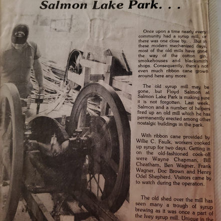 Floyd Salmon fired up the mill in 1988 and he and his friend, Willie C. Faulk, made syrup! The mill has not been in operation since. Check it out next time you come to Salmon Lake. It is located on the hill to the right of the stage.